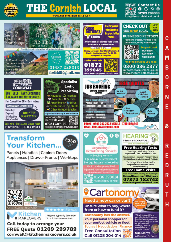 Add your business to the THE Cornish LOCAL Newquay Directory 0800 086 2811 thecornishlocal.co.uk info@thecornishlocal.co.uk