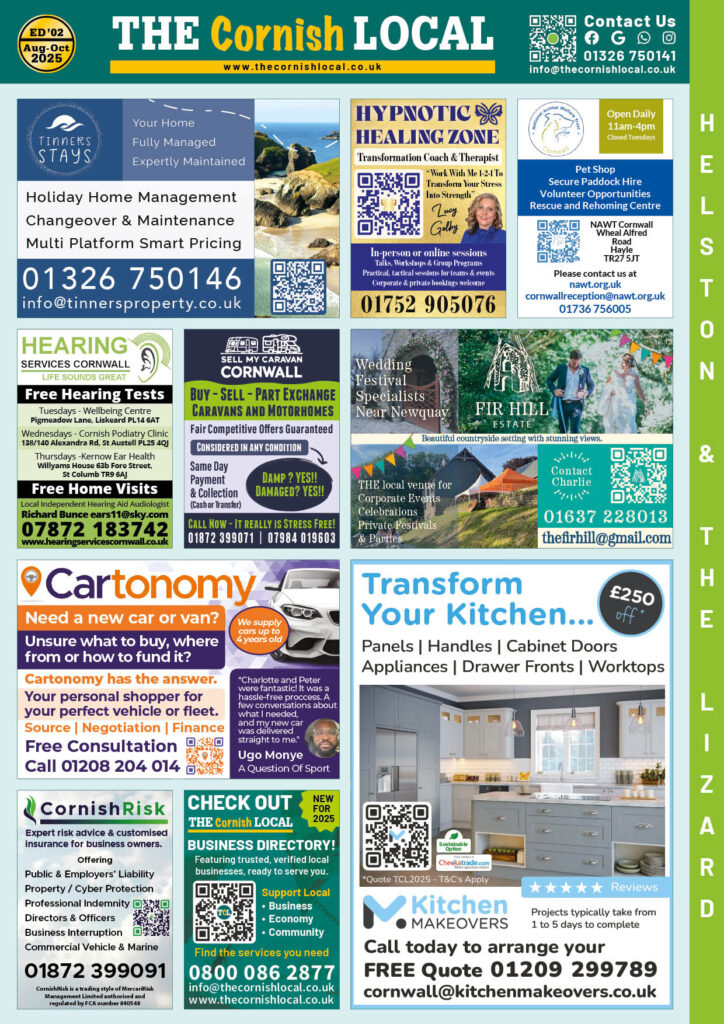 Add your business to the THE Cornish LOCAL Newquay Directory 0800 086 2811 thecornishlocal.co.uk info@thecornishlocal.co.uk