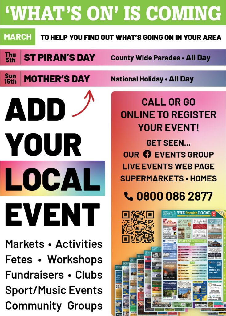 Add your business to the THE Cornish LOCAL Newquay Directory 0800 086 2811 thecornishlocal.co.uk info@thecornishlocal.co.uk
