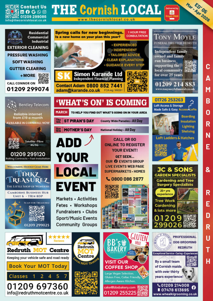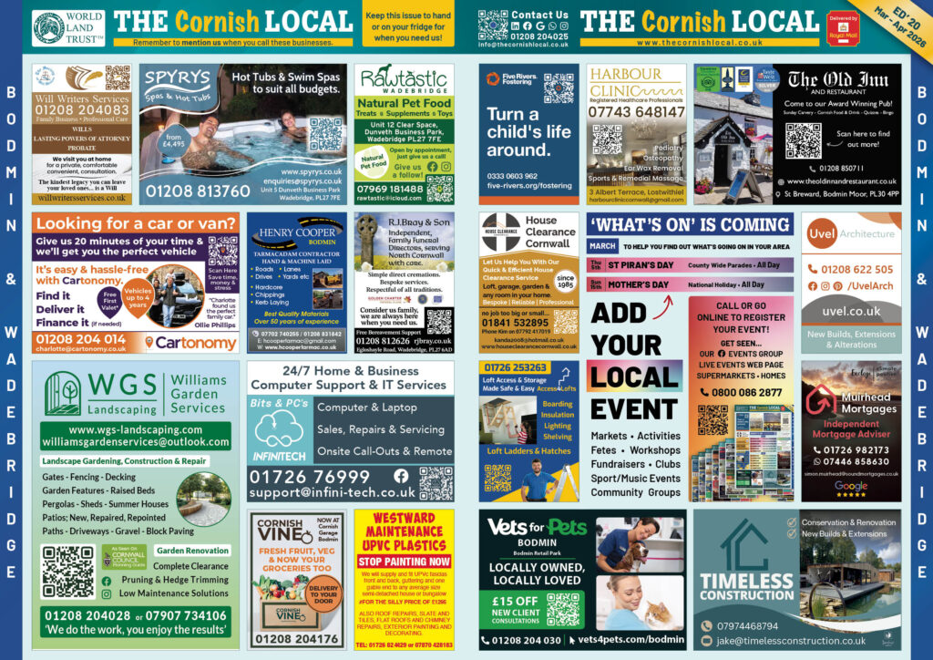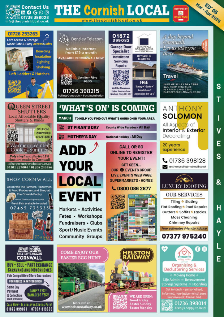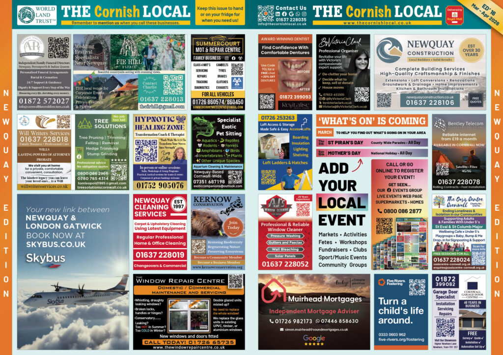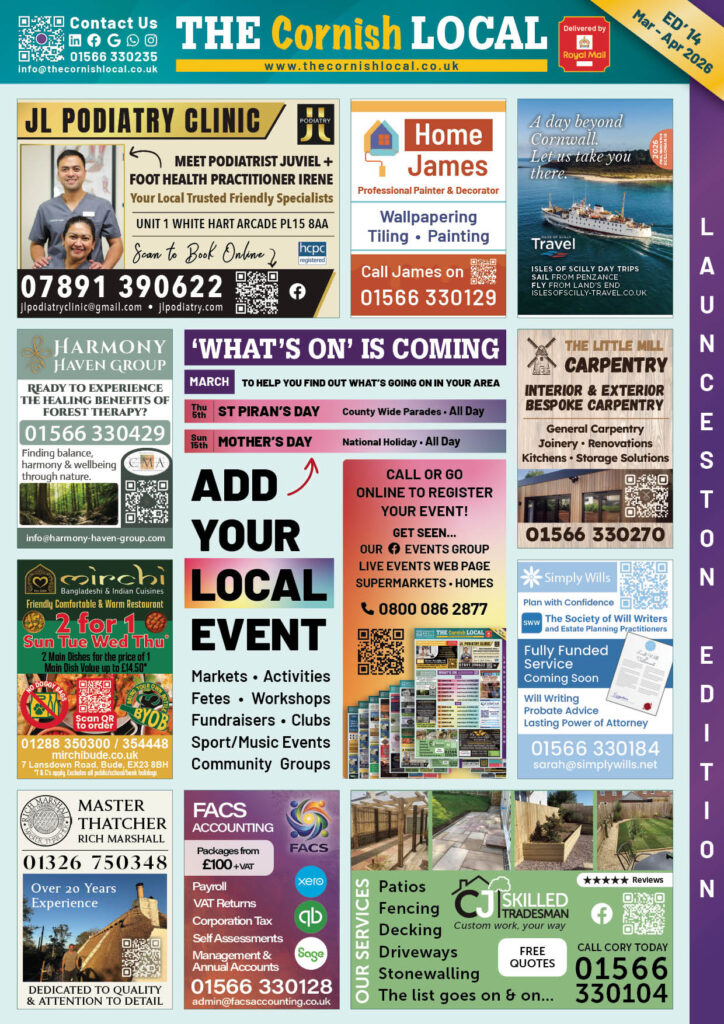 Add your business to the THE Cornish LOCAL Business Directory – Call us now on 0800 086 2811