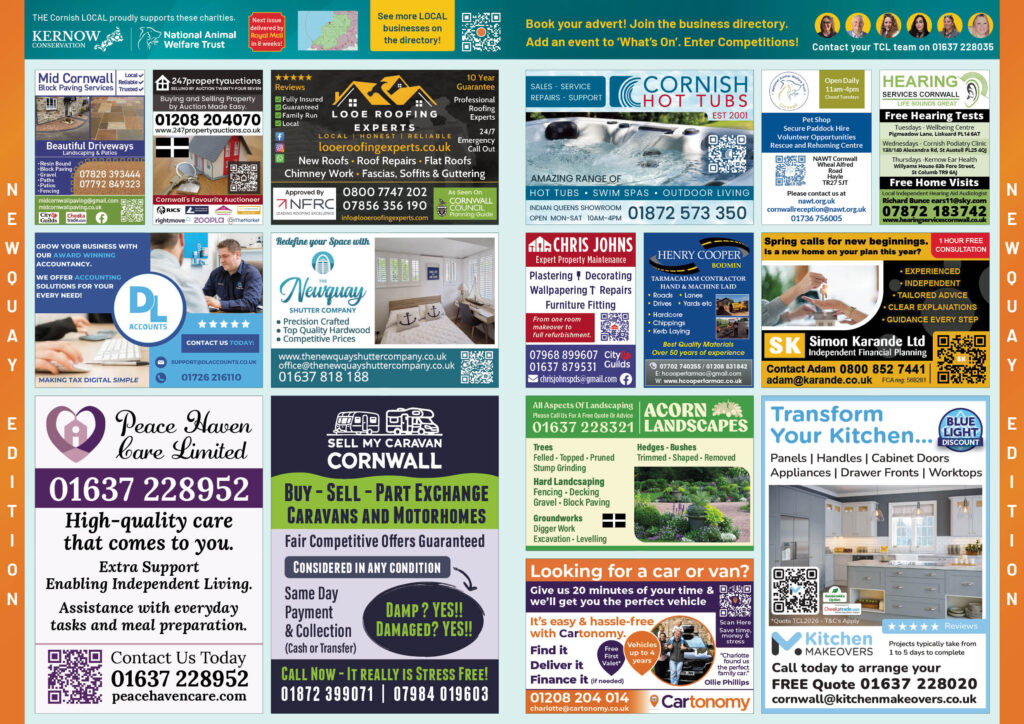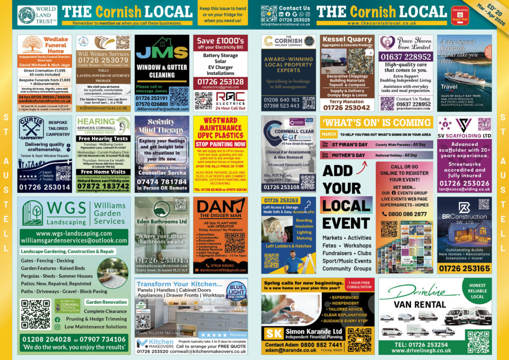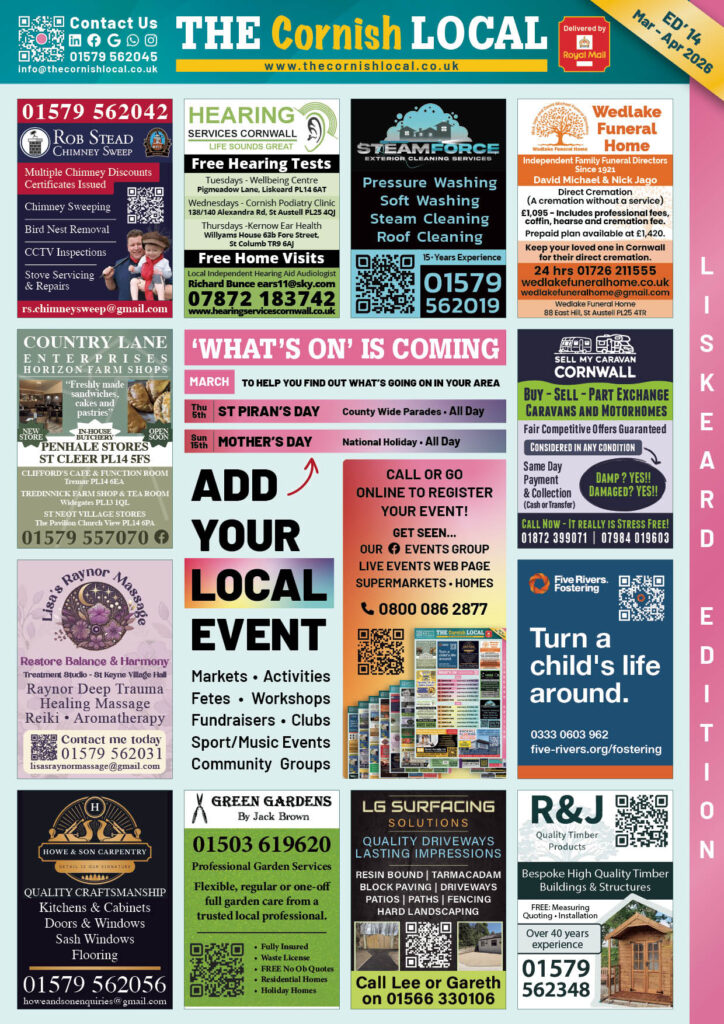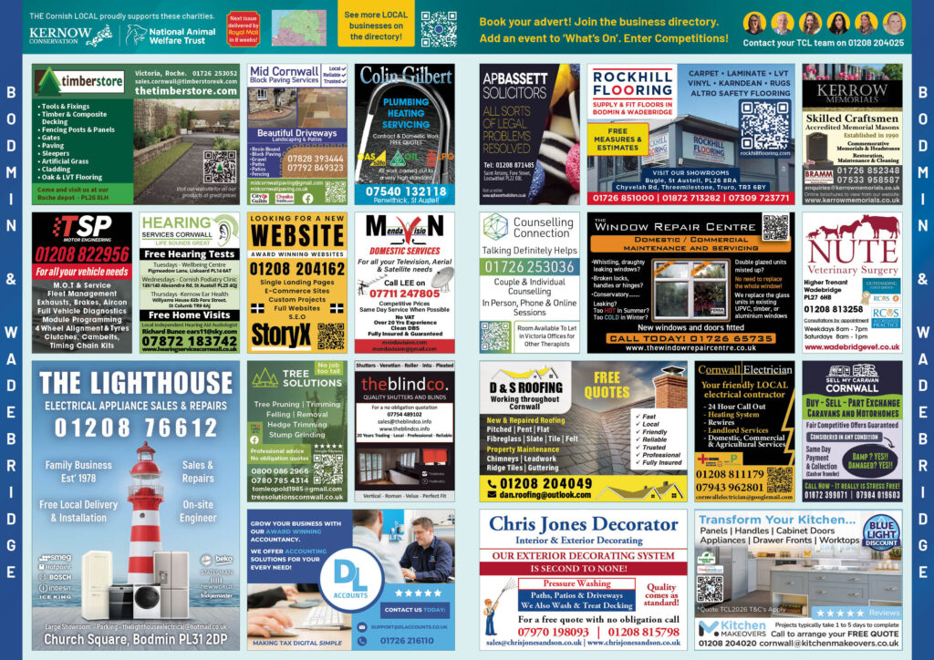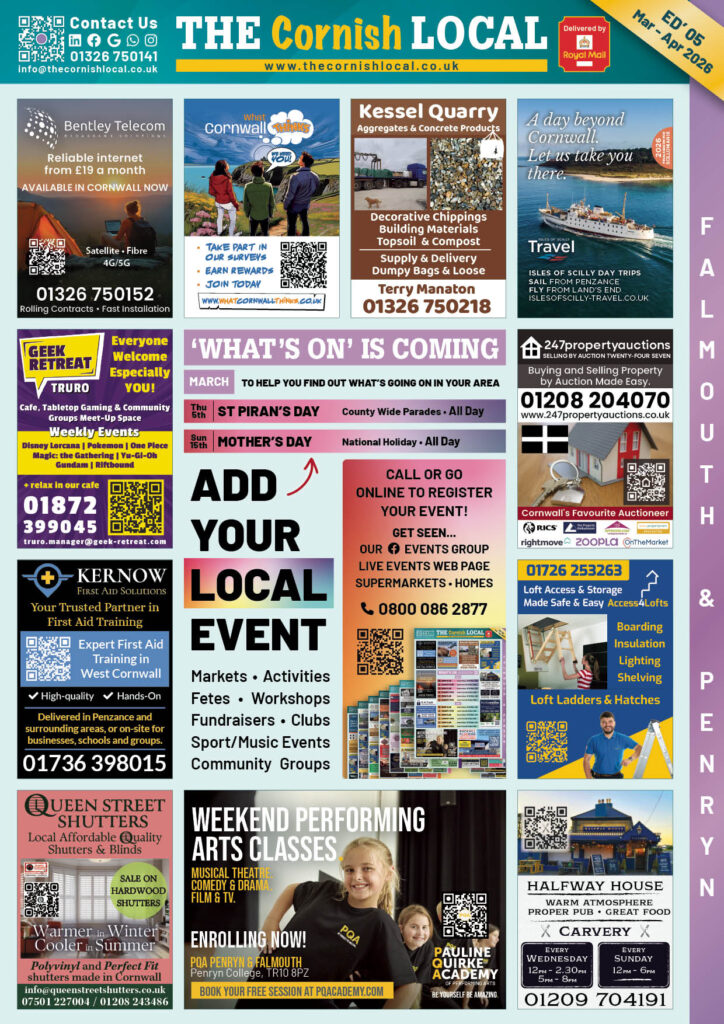 Add your business to the THE Cornish LOCAL Business Directory – Call us now on 0800 086 2811