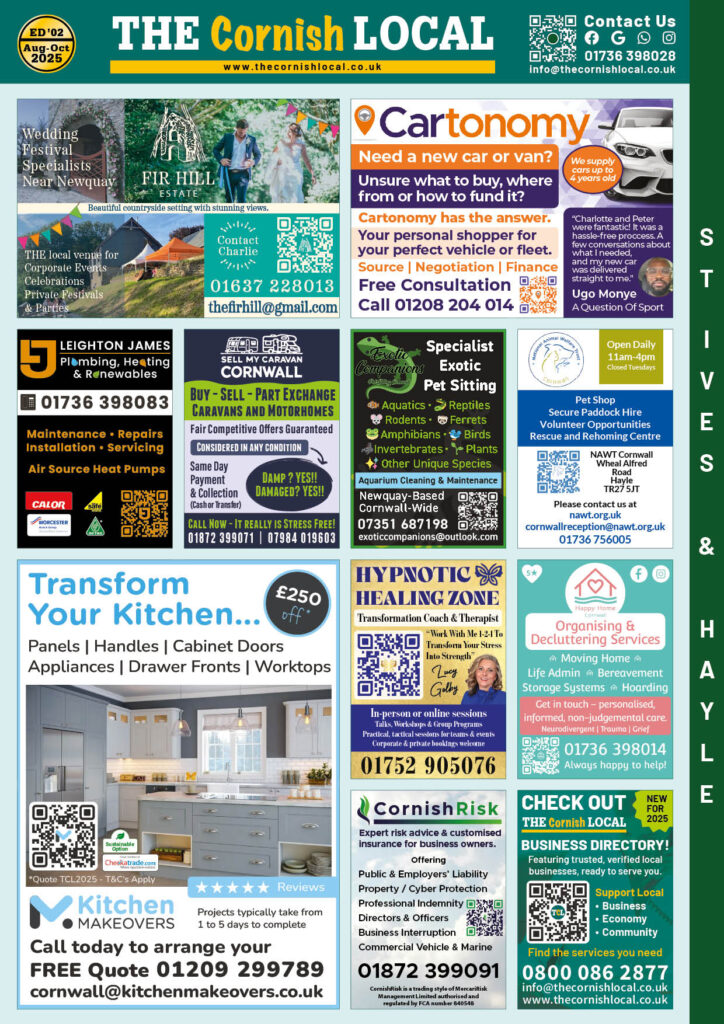 Add your business to the THE Cornish LOCAL Newquay Directory 0800 086 2811 thecornishlocal.co.uk info@thecornishlocal.co.uk