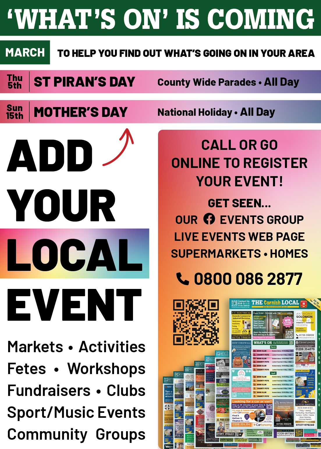 Add your business to the THE Cornish LOCAL Newquay Directory 0800 086 2811 thecornishlocal.co.uk info@thecornishlocal.co.uk